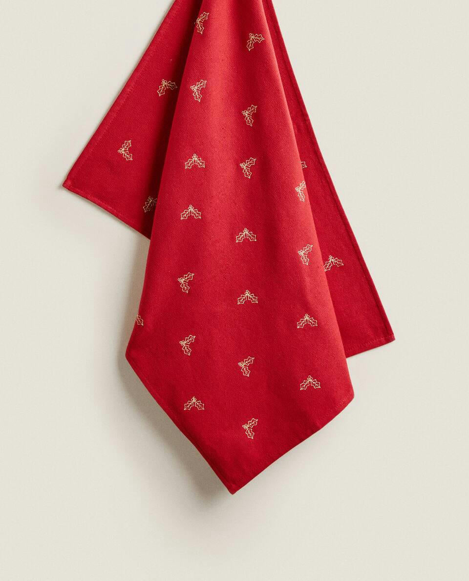 EMBROIDERED CHRISTMAS TREE COTTON TEA TOWEL