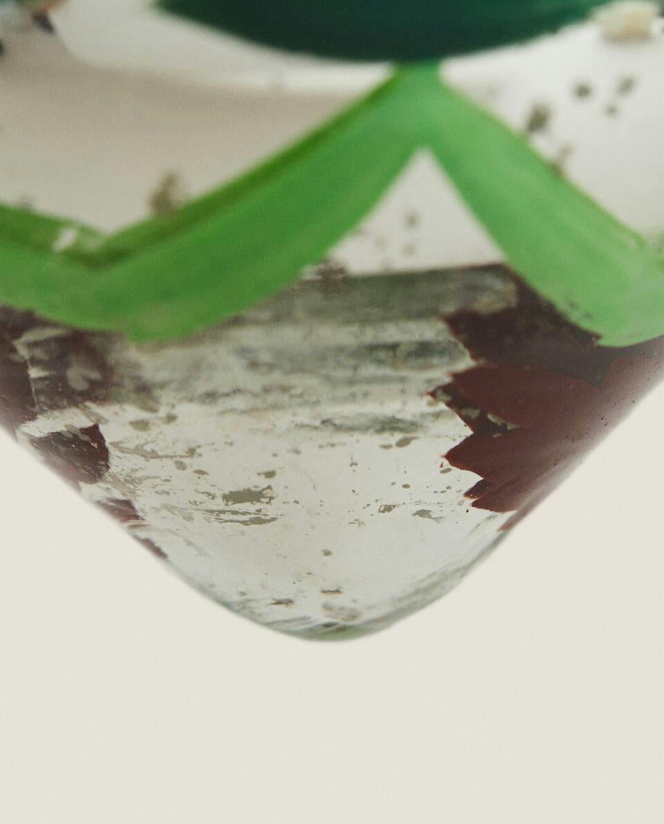 Mercurised glass Christmas tree decoration in the shape of a spinning top with painted zigzag details.